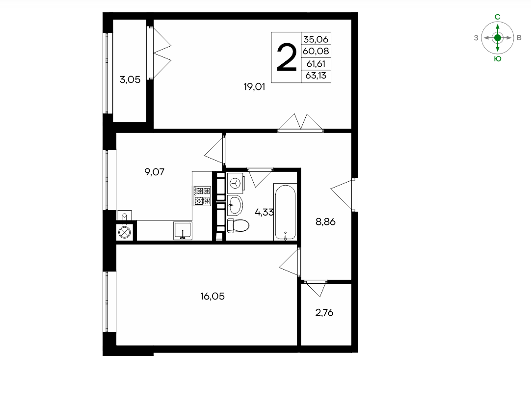 В продаже лоты на выбор от 35.28 - 80.39 м2