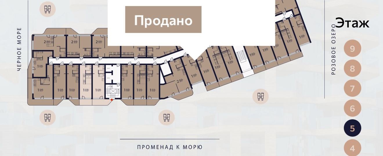 Предлагаем вам уникальную возможность стать владельцем стильных однокомнатных апартаментов в новом жилом комплексе (корпус Эстет Апарт). Общая площадь: 23,1 кв.м., 5 этаж. Апартаменты с видом на променадную зону. Обращаем ваше внимание, что вид на море и озеро из данного номера отсутствует.