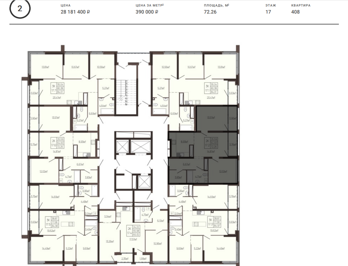 В продаже лоты на выбор от 26.74 - 109.51 м2