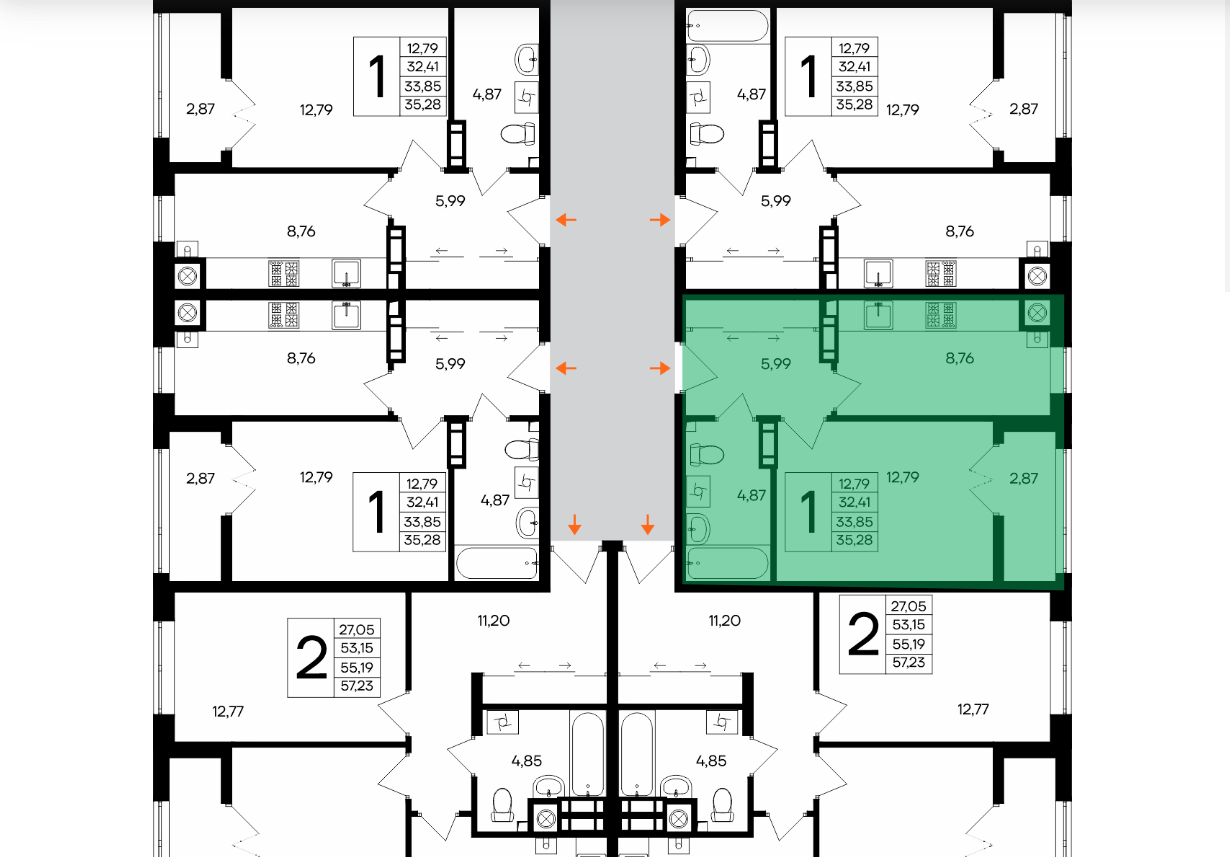 В продаже лоты на выбор от 35.28 - 80.39 м2