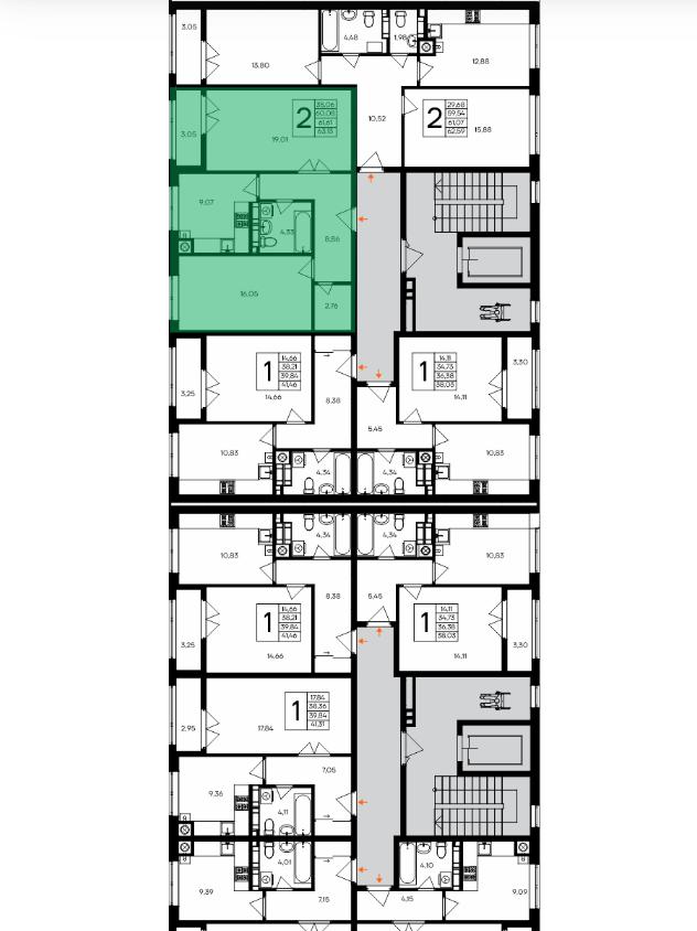 В продаже лоты на выбор от 35.28 - 80.39 м2