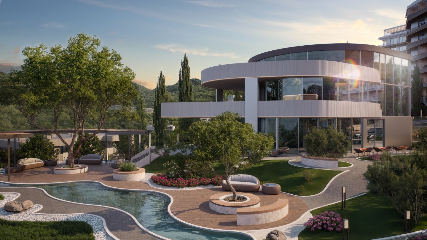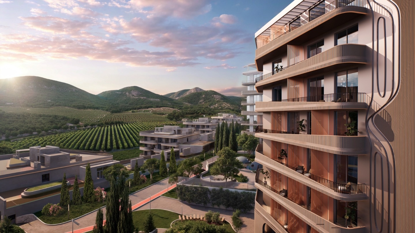 Комплекс предлагает разнообразные варианты жилья: вместительные квартиры, комфортабельные таунхаусы и эксклюзивные скай-виллы. Архитектурный ансамбль состоит из пяти корпусов различной этажности (от 4 до 7 этажей), которые деликатно дополняют окружающий ландшафт, сохраняя его природную целостность.