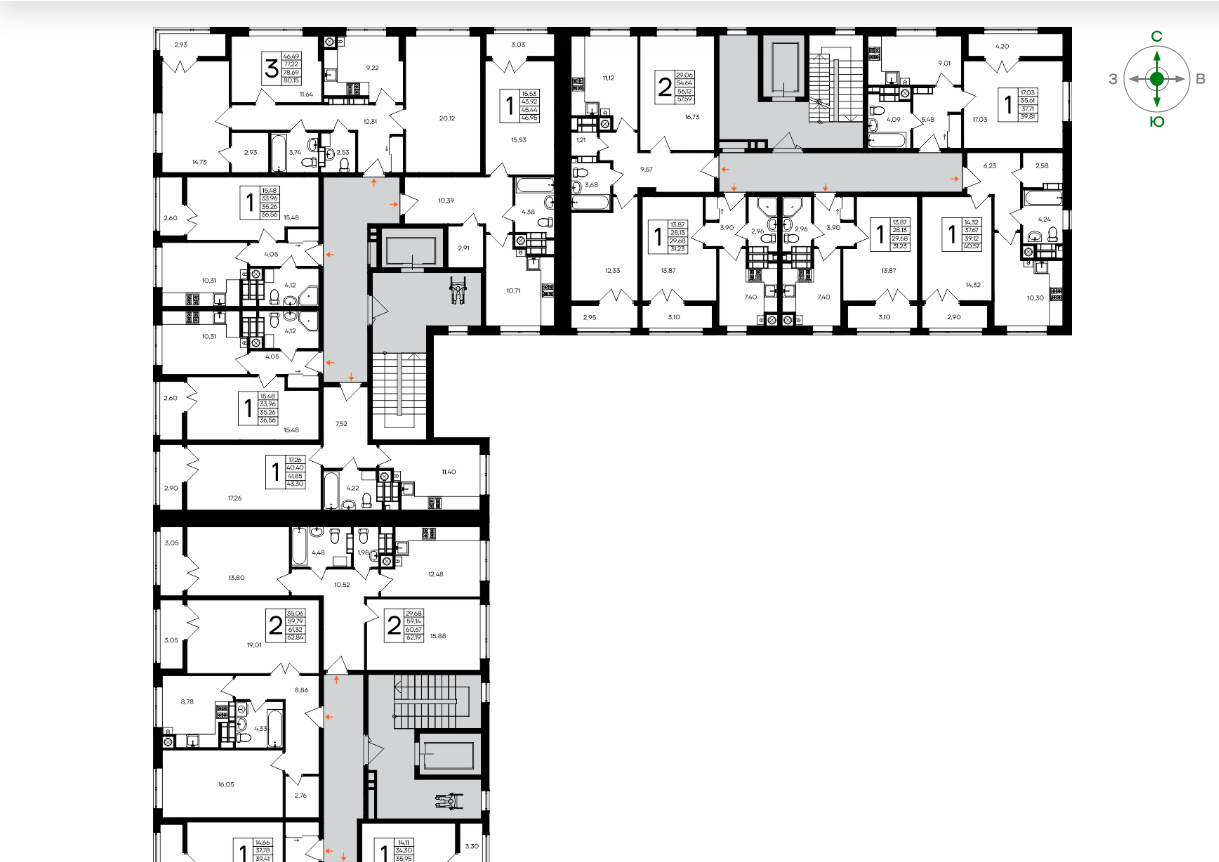 -просторные трёхкомнатные квартиры – 80 м²