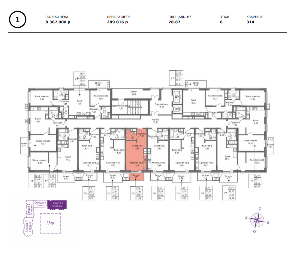 В монолитно-кирпичных секциях первой очереди предусмотрены студии, однокомнатные, двухкомнатные, трехкомнатные квартиры и квартиры с террасами.