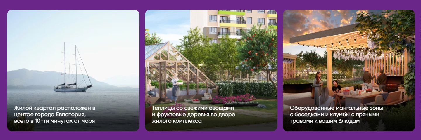 Это яркая архитектура, насыщенная внутренняя инфраструктура, современные инженерные решения, безопасность, сочные краски моря, цветов и фруктов круглый год.