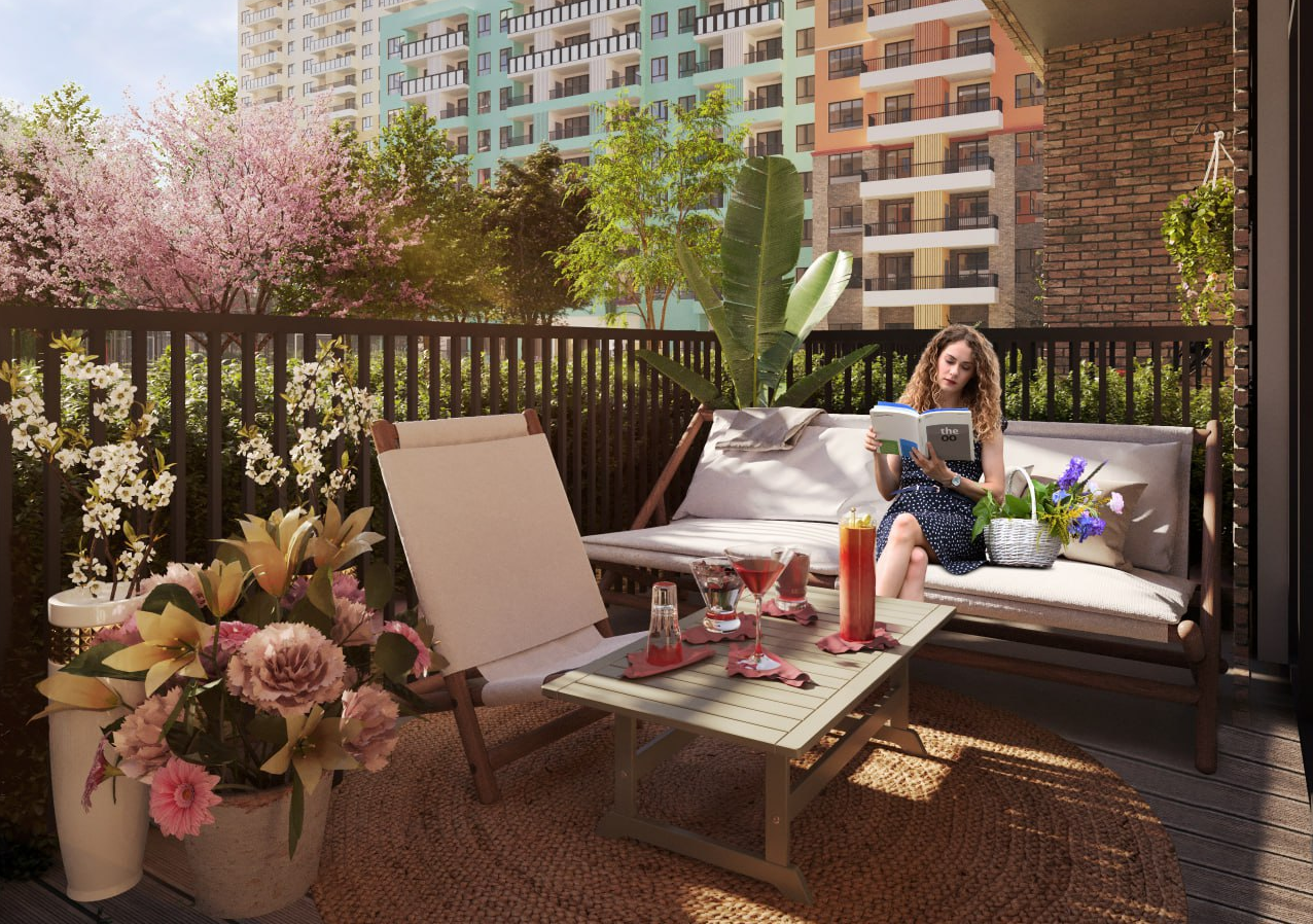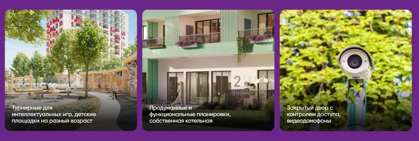 Инфраструктура ЖК: дизайнерское лобби для отдыха, мангальная зона с беседками, спортивная площадка, турнирная зона на свежем воздухе, детская площадка, дворовые теплицы, ухоженная придомовая территория с клумбами и садовыми насаждениями.